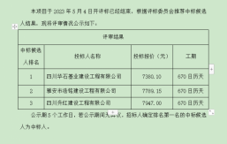成雅工業(yè)園區(qū)百丈安置房二期項(xiàng)目鋼筋采購,根據(jù)有關(guān)法律、法規(guī)、規(guī)章的規(guī)定,于2023年4月21日經(jīng)雅安市名山區(qū)益業(yè)商貿(mào)有限公司競爭性談判比選流程,評審工作已經(jīng)結(jié)束,成交人已經(jīng)確定,現(xiàn)將成交結(jié)果公示如下:成交單位名稱:四川霞成商貿(mào)有限公司成交價(jià):加成價(jià)30元/噸進(jìn)場時(shí)間:待甲方通知成交質(zhì)量要求:合格自成交結(jié)果公示之日起一個(gè)工作日內(nèi),對成交結(jié)果無異議的,采購人將簽發(fā)成交通知書,并在五個(gè)工作日內(nèi)簽訂合同。雅安市名山區(qū)益業(yè)商貿(mào)有限公司2023年4月23日...